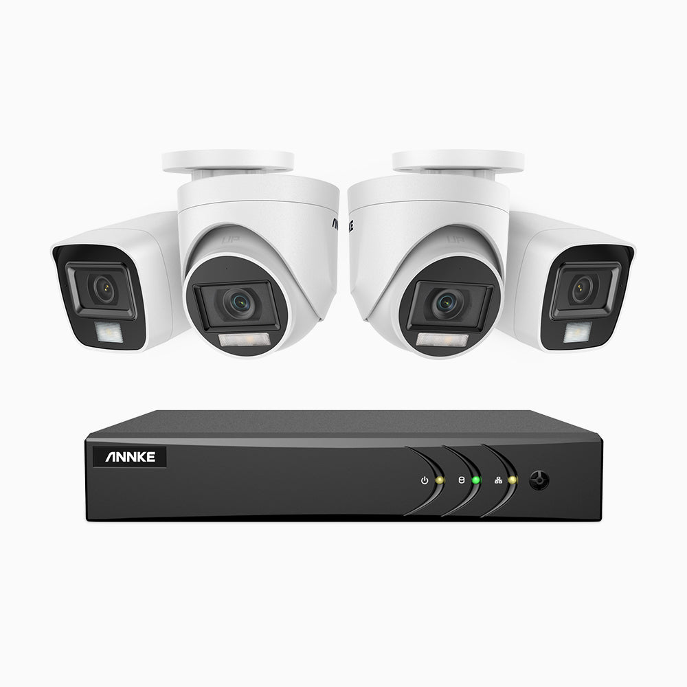 En mode double éclairage intelligent par défaut, la caméra peut clairement détecter la cible la nuit grâce à la lumière infrarouge. Si une cible en mouvement est détectée, la lumière blanche s'allume, la lumière infrarouge s'éteint, afin d'obtenir une image couleur nette. De plus, vous pouvez également choisir le mode infrarouge complet ou le mode lumière blanche complet. L'éclairage infrarouge atteint jusqu'à 25 m, la distance de la lumière blanche peut aller jusqu'à 20 m pour une imagerie nocturne lumineuse.