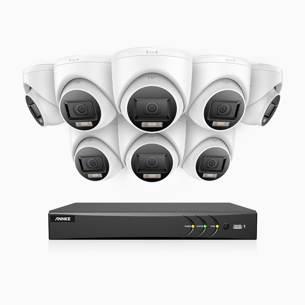 ADLK800 - Kit de surveillance CCTV filaire à double lumière 4K à 8 canaux avec 8 caméras, 3840x2160@20fps, f/1.6 Super Ouverture, signal de sortie 4-en-1, IP67