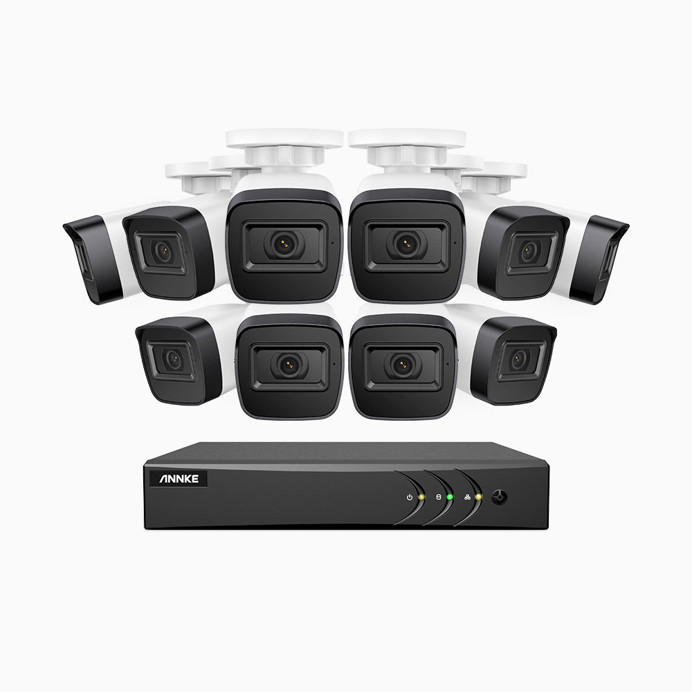 EL200 - Kit de surveillance filaire 1080p à 16 canaux avec 10 caméras, DVR intelligent avec détection humaine et véhicule, vision nocturne infrarouge de 66 pieds, signal de sortie 4-en-1, IP67