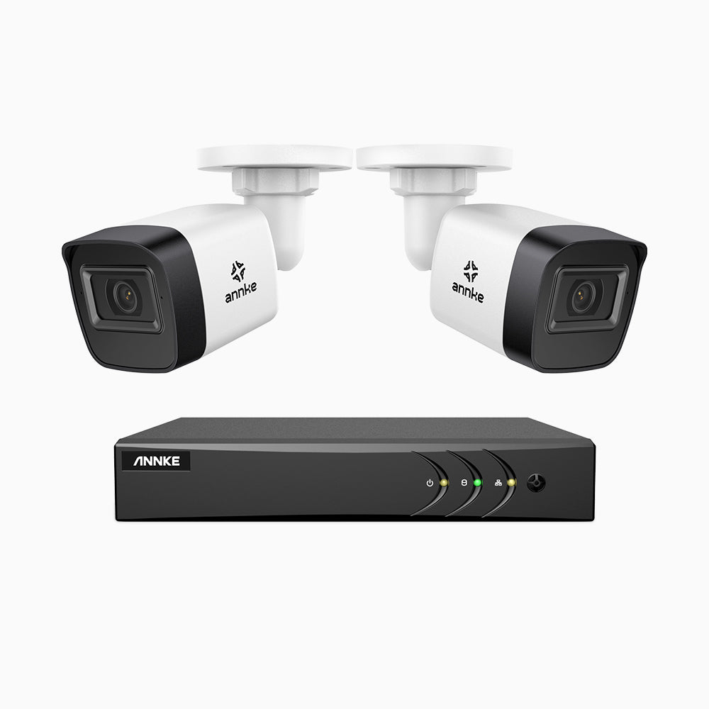 EL200 - Kit de surveillance filaire 1080p à 8 canaux avec 2 caméras, DVR intelligent avec détection humaine et véhicule, vision nocturne infrarouge de 66 pieds, signal de sortie 4-en-1, IP67
