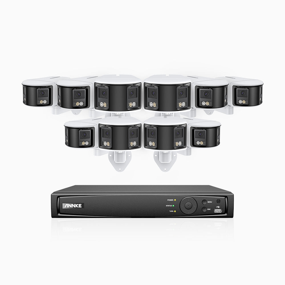 FDH600 - Kit de surveillance PoE 6MP à 16 canaux avec 10 caméras, double objectif, ultra grand angle 180°, super ouverture f/1.2, micro intégré, sirène et alarme actives, Détection Intelligente de Mouvement