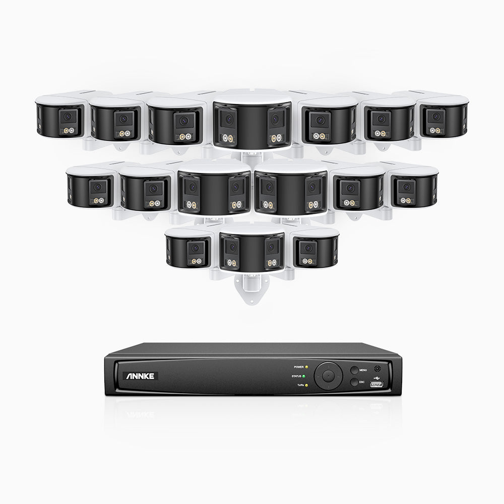 FDH600 - Kit de surveillance PoE 6MP à 16 canaux avec 16 caméras, double objectif, ultra grand angle 180°, super ouverture f/1.2, micro intégré, sirène et alarme actives, Détection Intelligente de Mouvement