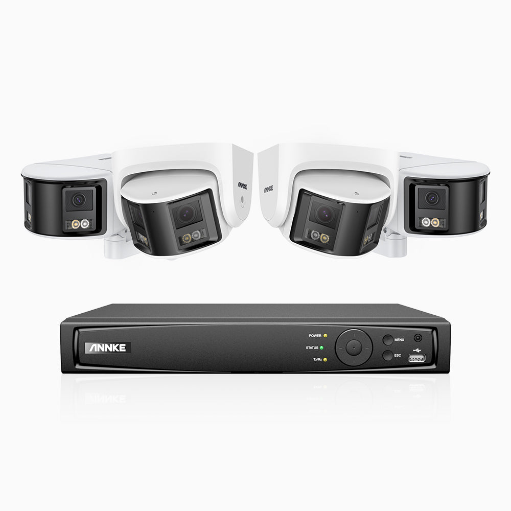 FDH600 - Kit de surveillance PoE 6MP à 8 canaux avec 2 caméras bullet et 2 caméras tourelle, double objectif, ultra grand angle 180°, super ouverture f/1.2, micro intégré, Détection Intelligente de Mouvement