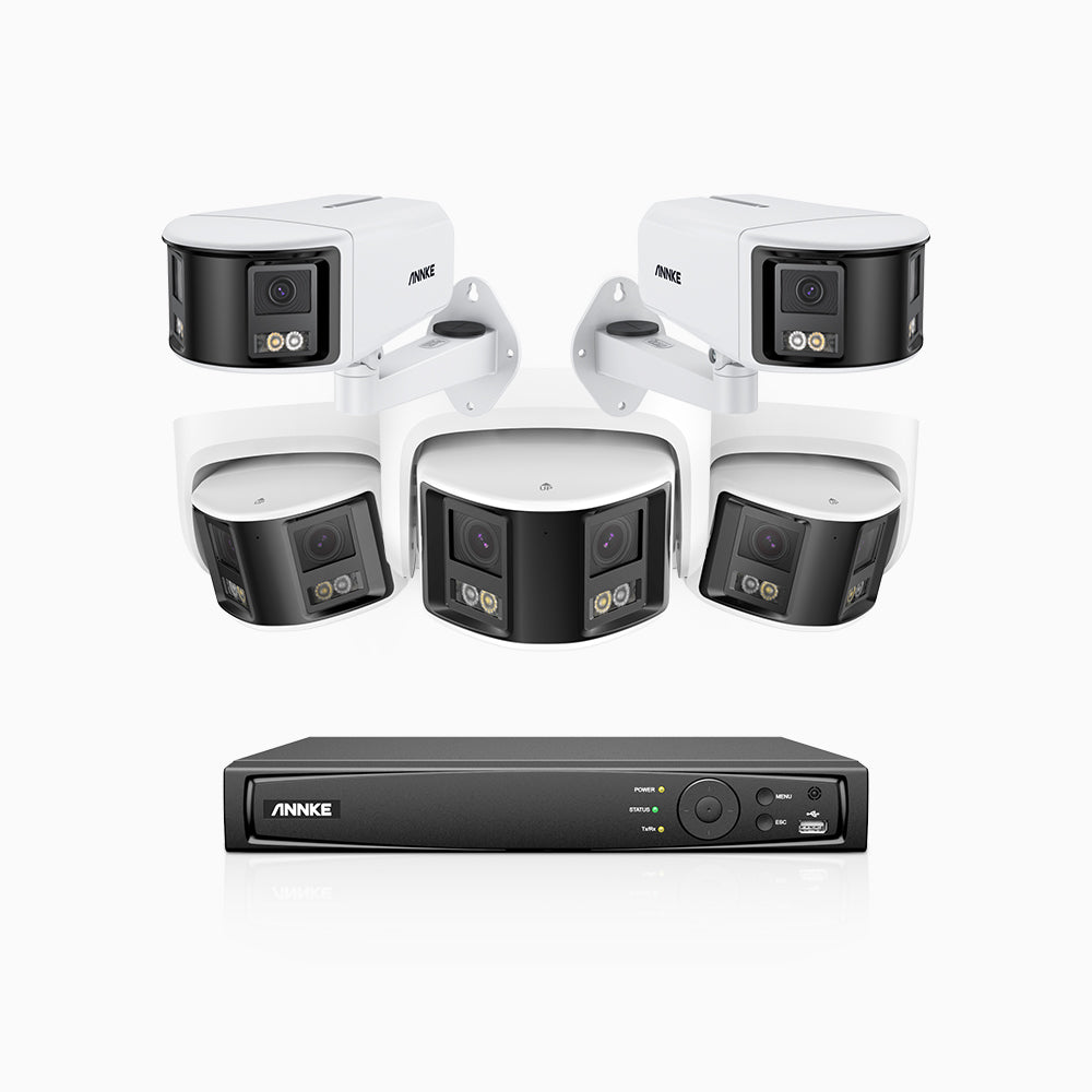 FDH600 - Kit de surveillance PoE 6MP à 8 canaux avec 2 caméras bullet et 3 caméras tourelle, double objectif, ultra grand angle 180°, super ouverture f/1.2, micro intégré, Détection Intelligente de Mouvement