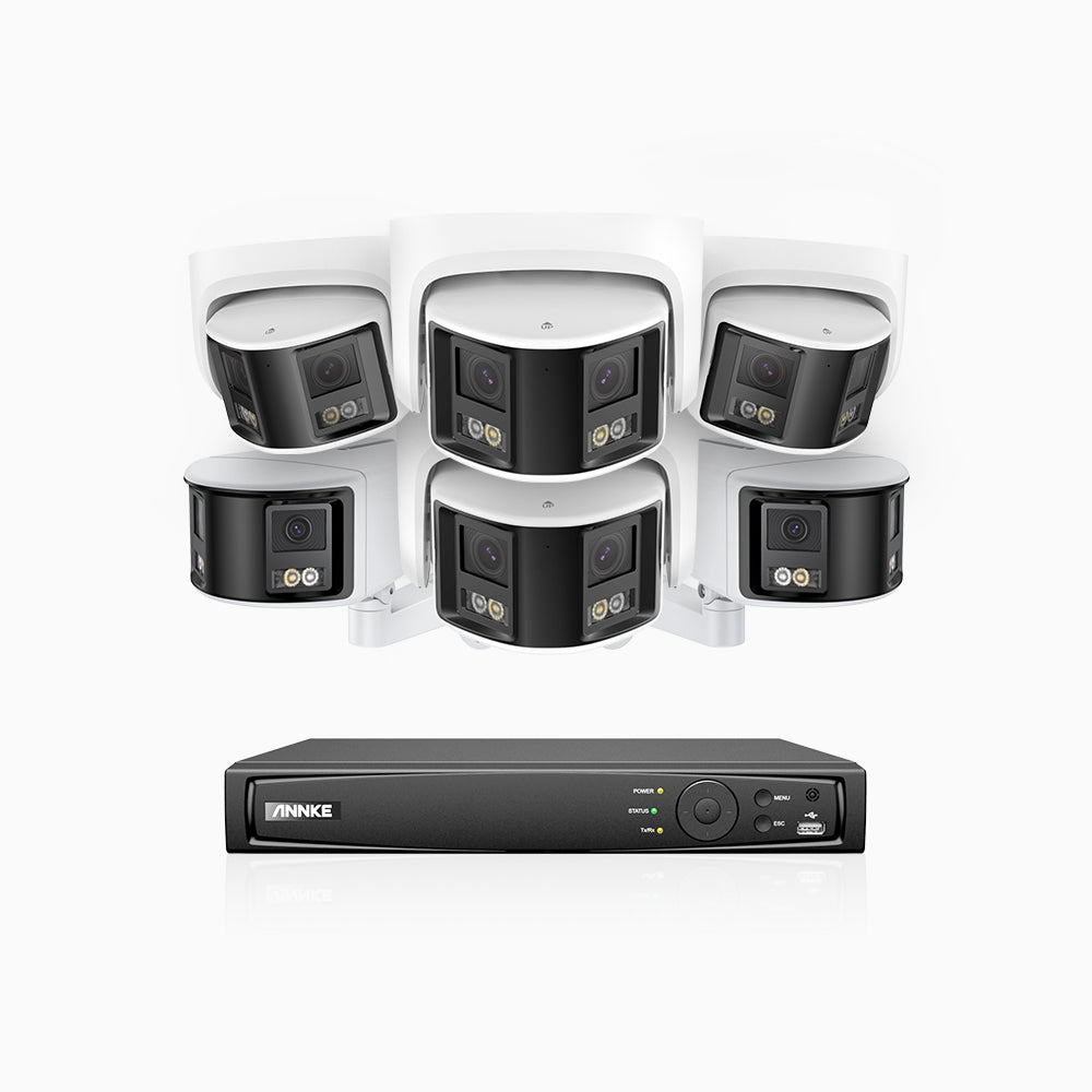 FDH600 - Kit de surveillance PoE 6MP à 8 canaux avec 2 caméras bullet et 4 caméras tourelle, double objectif, ultra grand angle 180°, super ouverture f/1.2, micro intégré, Détection Intelligente de Mouvement
