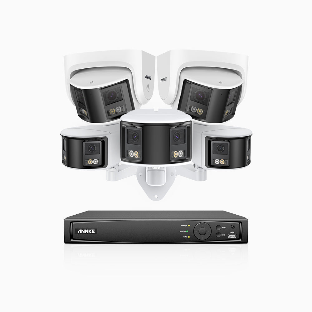 FDH600 - Kit de surveillance PoE 6MP à 8 canaux avec 3 caméras bullet et 2 caméras tourelle, double objectif, ultra grand angle 180°, super ouverture f/1.2, micro intégré, Détection Intelligente de Mouvement