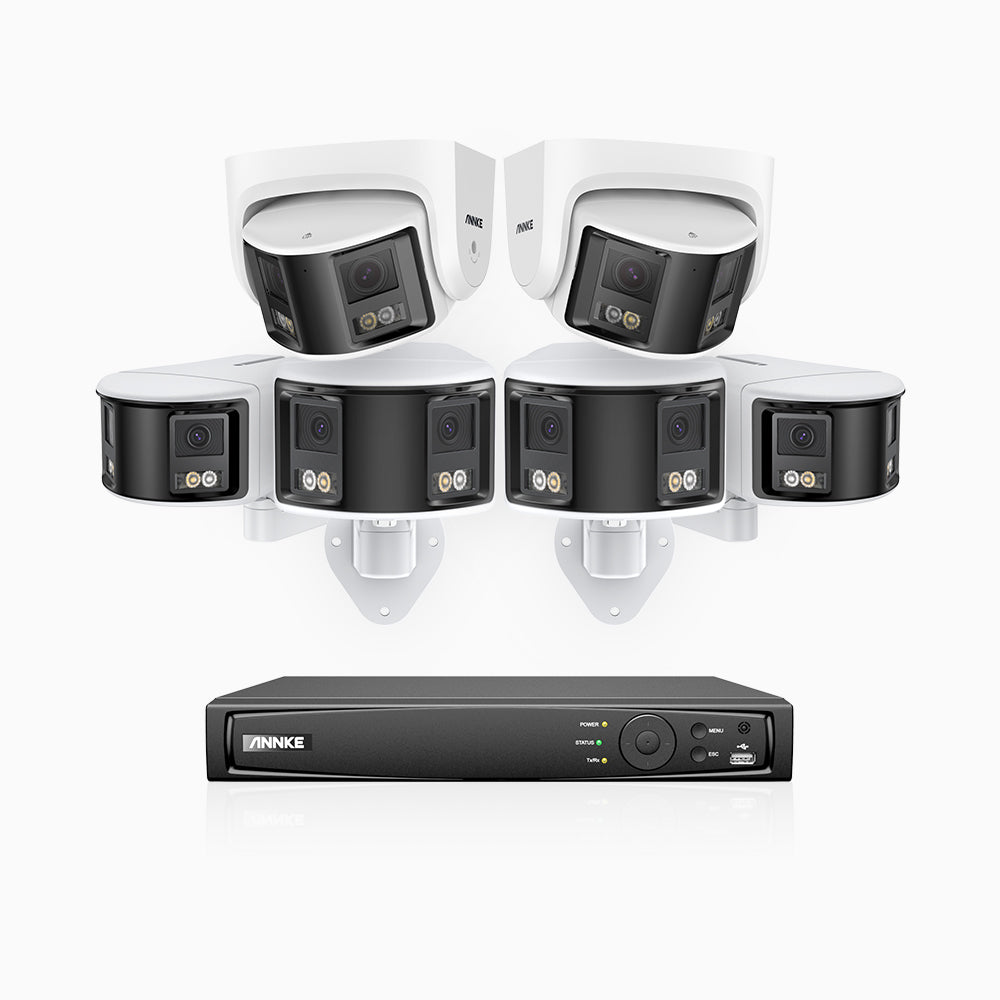 FDH600 - Kit de surveillance PoE 6MP à 8 canaux avec 4 caméras bullet et 2 caméras tourelle, double objectif, ultra grand angle 180°, super ouverture f/1.2, micro intégré, Détection Intelligente de Mouvement