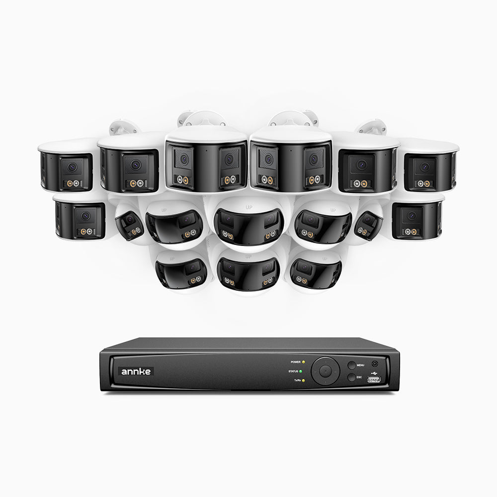 Découvrez une surveillance de nouvelle génération avec un champ de vision ultra-large de 180° sans interruption, dans un format cinématographique 20:9. La technologie à double objectif offre une visibilité inégalée sans aucun angle mort — idéale pour surveiller de vastes zones comme les jardins, les places ou les campus.