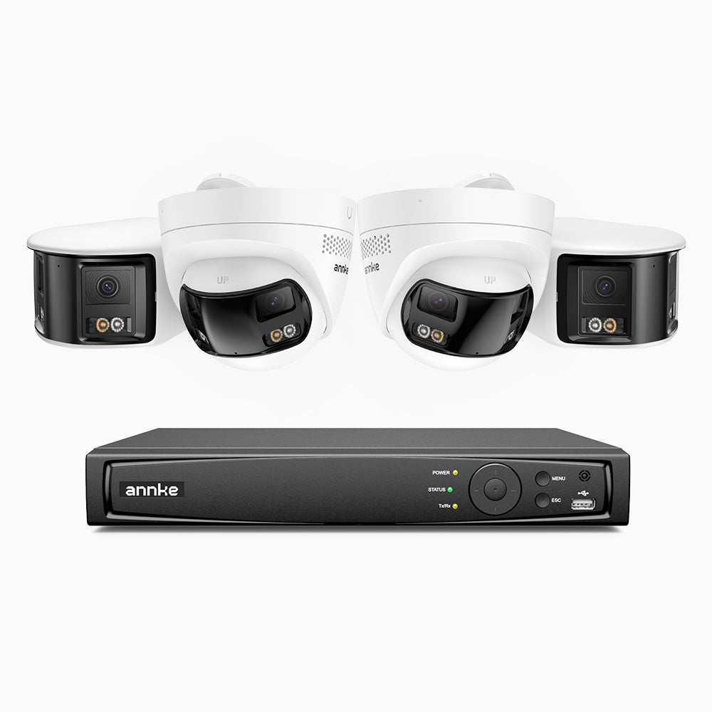 Découvrez une surveillance de nouvelle génération avec un champ de vision ultra-large de 180° sans interruption, dans un format cinématographique 20:9. La technologie à double objectif offre une visibilité inégalée sans aucun angle mort — idéale pour surveiller de vastes zones comme les jardins, les places ou les campus.