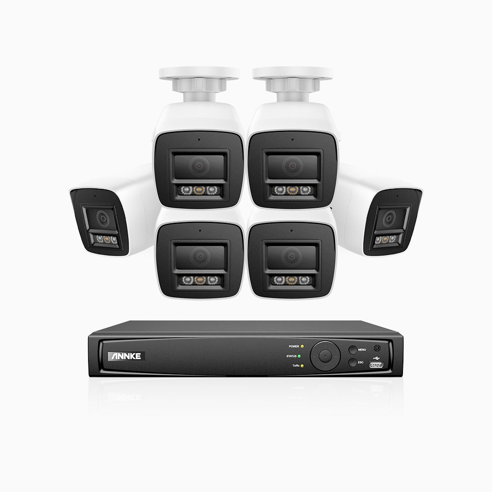 H1200 - Kit de surveillance PoE 4K 12MP à 8 canaux avec 6 caméras, vision nocturne couleur et IR, détection humaine et véhiculaire, H.265+, microphone intégré, stockage local maximal de 512 Go, IP67