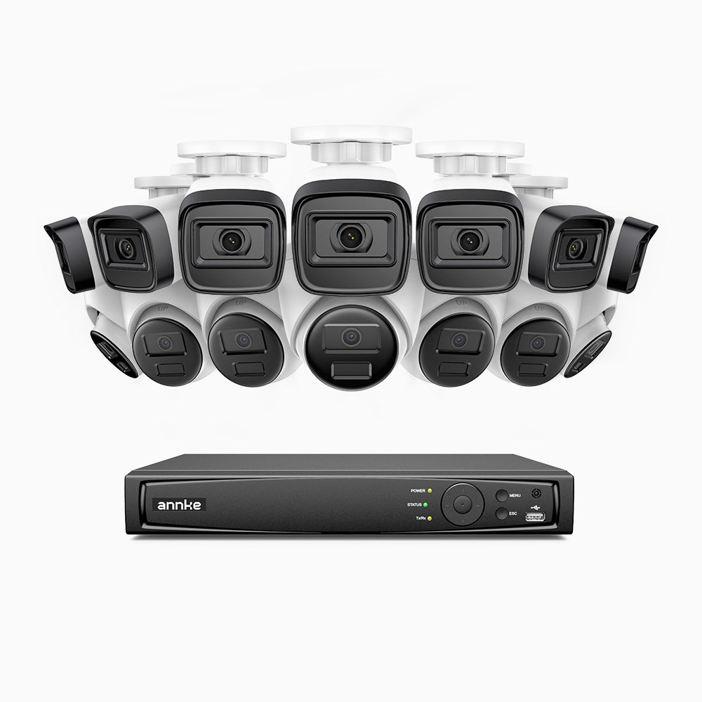 H300 - Kit de surveillance PoE 3MP à 16 canaux avec 7 caméra bullet et 7 caméras tourelle, vision nocturne EXIR 2.0, détection de mouvement, H.265+, étanchéité IP67