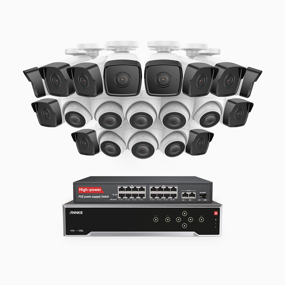 H500 - Kit de surveillance PoE 5MP à 32 canaux avec 12 caméras bullet et 8 caméras tourelle, Vision nocturne Infrarouge 2.0, Microphone intégré, Fente pour carte SD, Fonctionne avec Alexa, Switch PoE 16 ports inclus