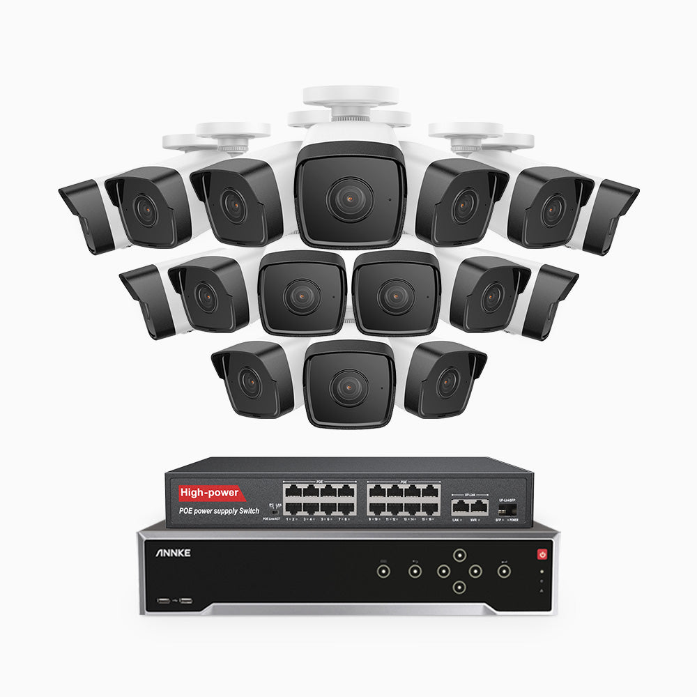 H500 - Kit de surveillance PoE 5MP à 32 canaux avec 16 caméras, Vision nocturne Infrarouge 2.0, Microphone intégré, Fente pour carte SD, Fonctionne avec Alexa, Switch PoE 16 ports inclus