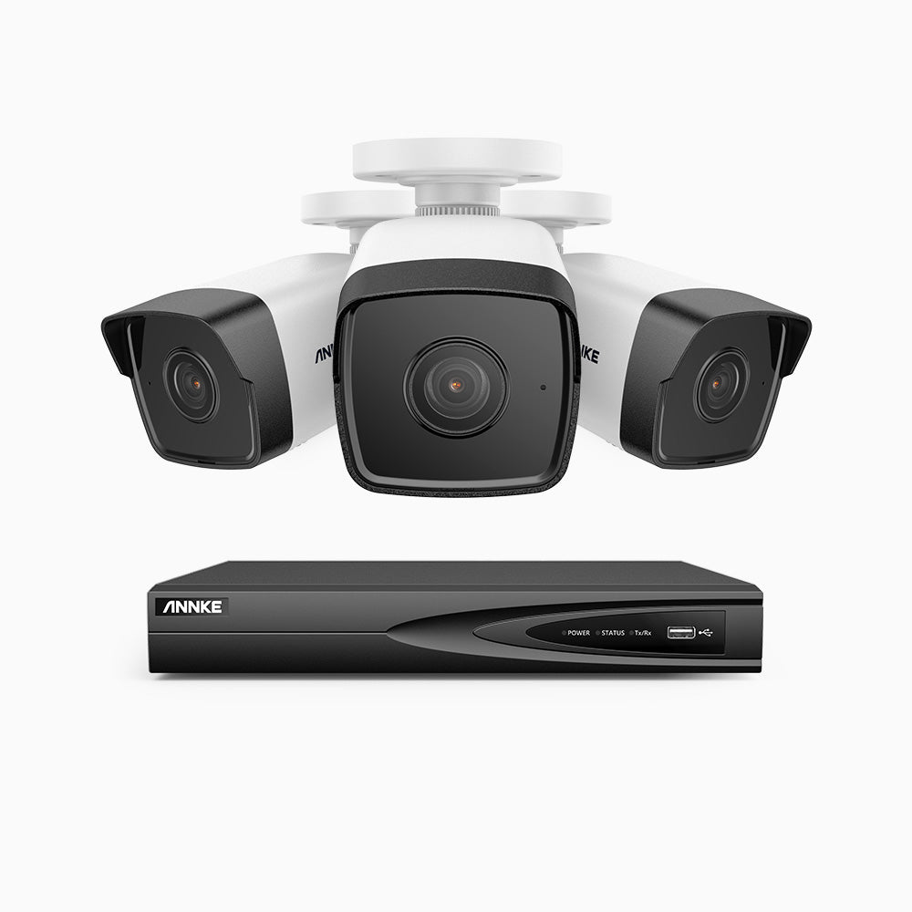 H500 - Kit de surveillance PoE 5MP à 4 canaux avec 3 caméras, Microphone intégré, Vision nocturne Infrarouge 2.0, Microphone intégré, RTSP et ONVIF pris en charge, Fonctionne avec Alexa