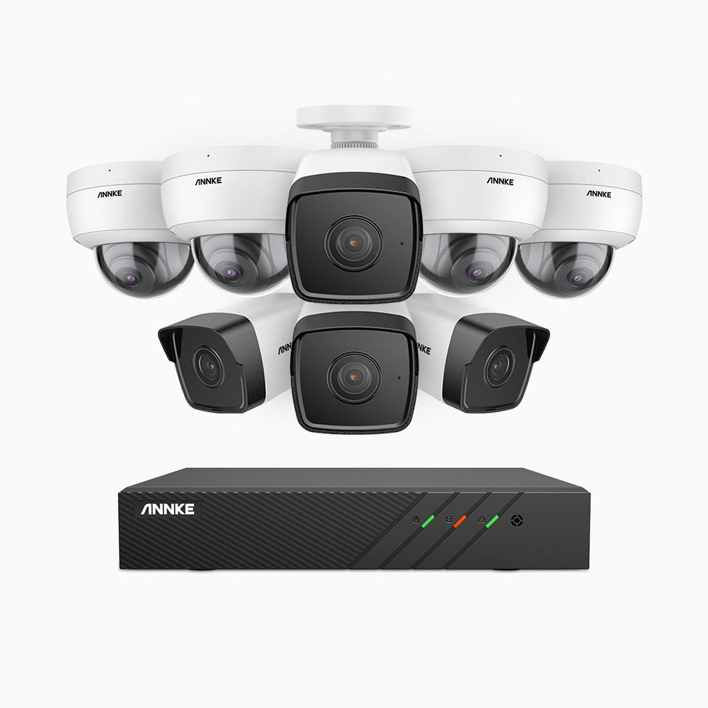 H500 - Kit de surveillance PoE 5MP à 8 canaux avec 4 caméras bullet et 4 caméras dome, Vision nocturne Infrarouge 2.0, Microphone intégré, RTSP et ONVIF pris en charge, Fonctionne avec Alexa