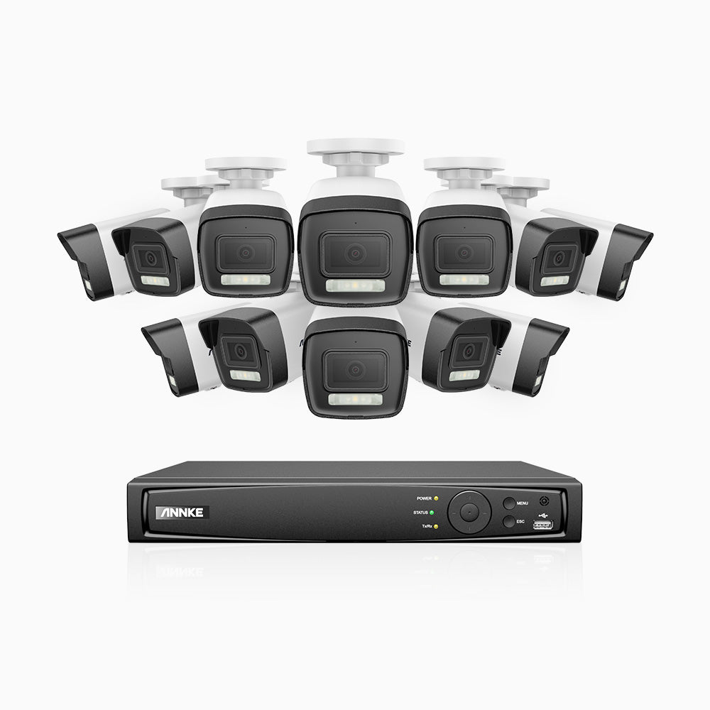 H500P - Kit de surveillance PoE 3K à 16 canaux avec 12 caméras, vision nocturne en couleur et infrarouge, résolution 3072*1728, ouverture f/1.6 (0.005 Lux), détection humaine et véhicule, microphone intégré, IP67