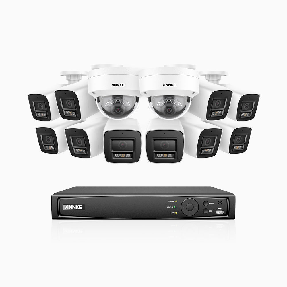 H800 - Kit de surveillance PoE 4K à 16 canaux avec 10 caméras bullet et 2 caméras dôme, anti-vandalisme IK10, vision nocturne en couleur et infrarouge, tection de personnes et de véhicules, Microphone intégré, RTSP et ONVIF pris en charge