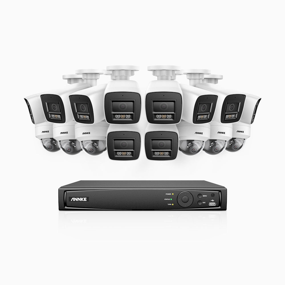 H800 - Kit de surveillance PoE 4K à 16 canaux avec 10 caméras bullet et 6 caméras dôme, anti-vandalisme IK10, vision nocturne en couleur et infrarouge, tection de personnes et de véhicules, Microphone intégré, Champ de vision de 96°, RTSP pris en charge