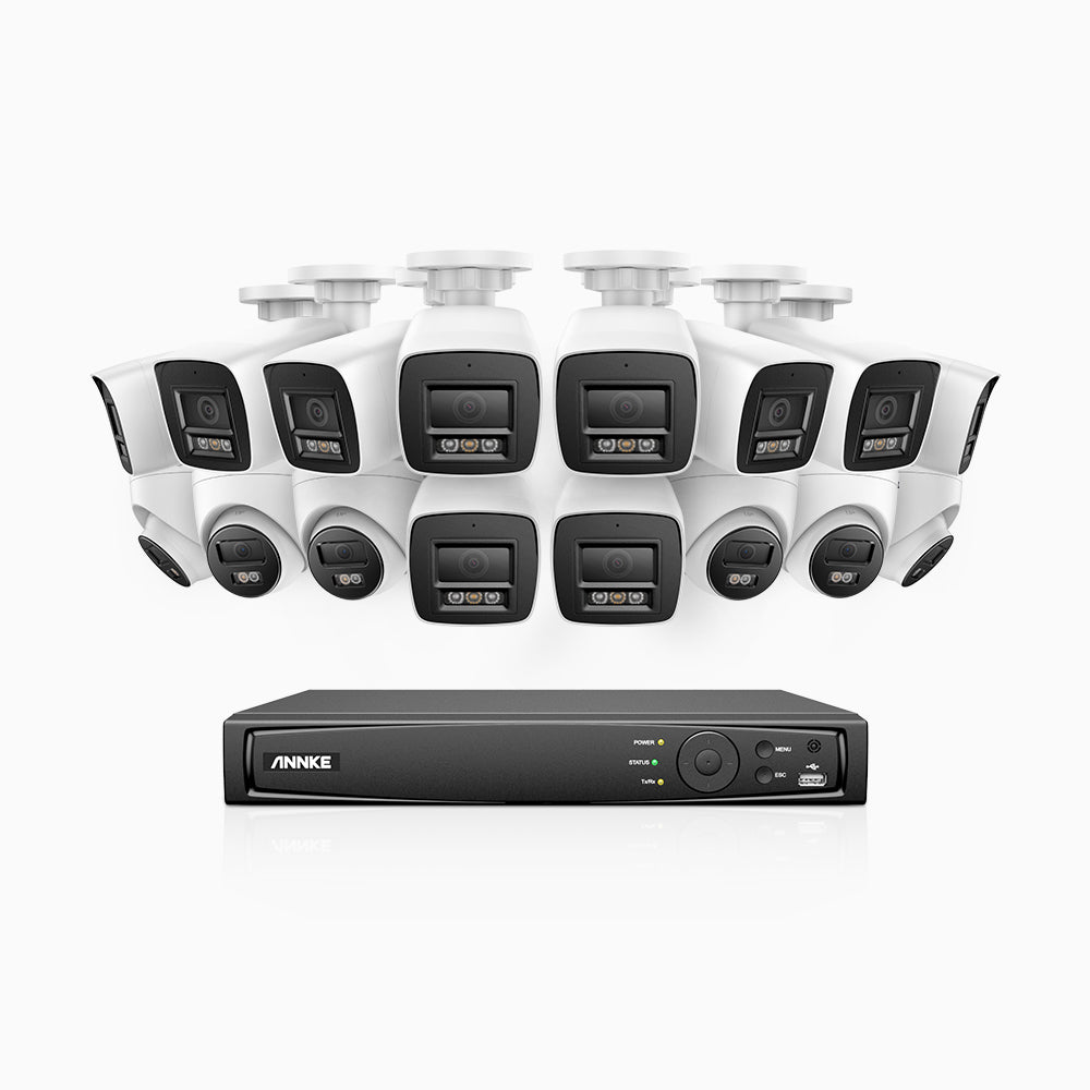 H800 - Kit de surveillance PoE 4K à 16 canaux avec 10 caméras bullet et 6 caméras tourelle, vision nocturne en couleur et infrarouge, Détection de personnes et de véhicules, Microphone intégré, Champ de vision de 96°, RTSP et ONVIF pris en charge