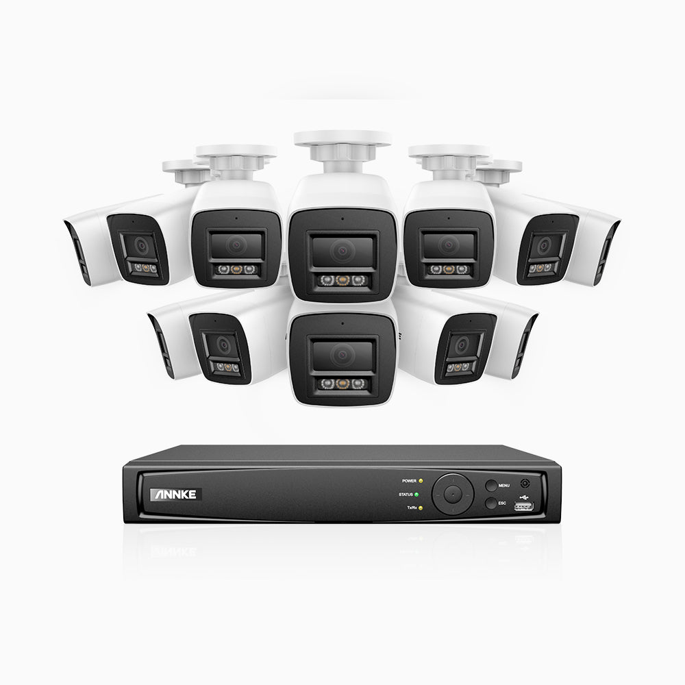 H800 - Kit de surveillance PoE 4K à 16 canaux avec 12 caméras, vision nocturne en couleur et infrarouge, Détection Personne-Véhicule, Microphone intégré, Champ de vision de 96°, RTSP et ONVIF pris en charge
