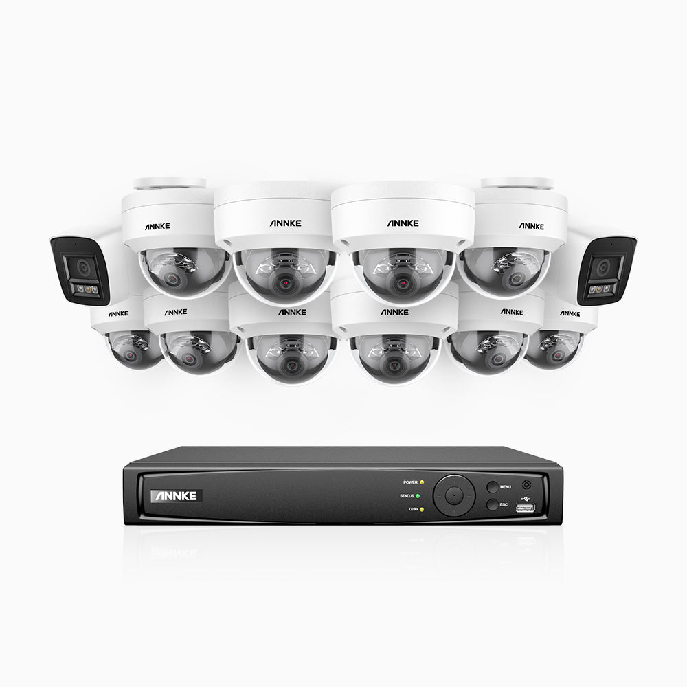 H800 - Kit de surveillance PoE 4K à 16 canaux avec 2 caméras bullet et 10 caméras dôme, anti-vandalisme IK10, vision nocturne en couleur et infrarouge, Détection Personne-Véhicule, Microphone intégré, Champ de vision de 96°, RTSP et ONVIF pris en charge