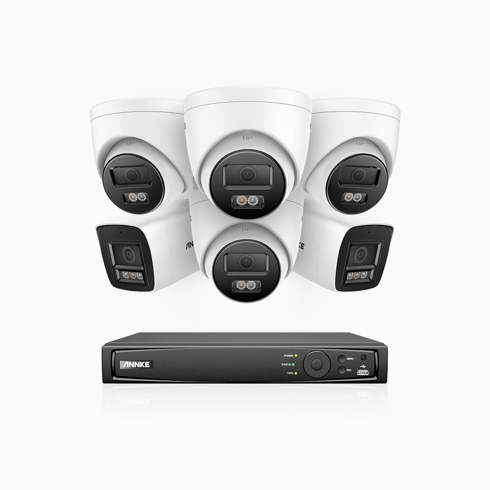 H800 - Kit de surveillance PoE 4K à 16 canaux avec 2 caméras bullet et 4 caméras tourelle, vision nocturne en couleur et infrarouge, Détection de personnes et de véhicules, Microphone intégré, Champ de vision de 96°, RTSP et ONVIF pris en charge