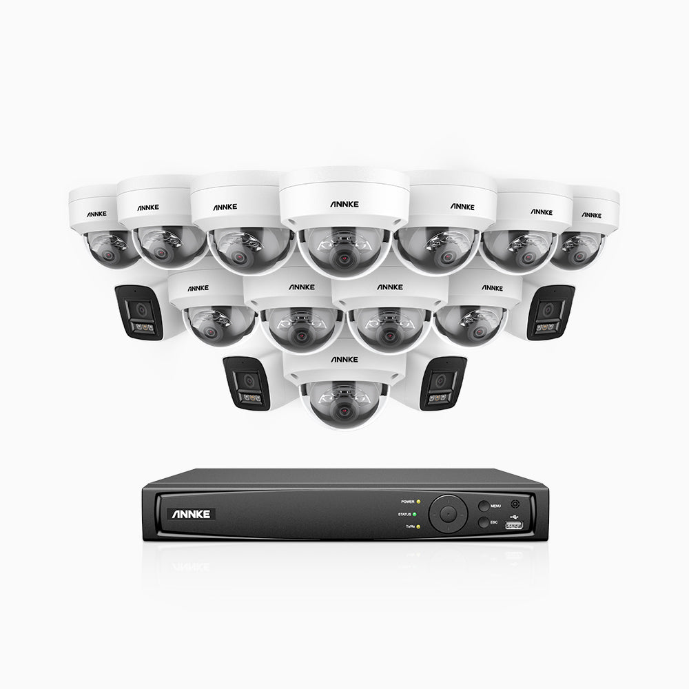 H800 - Kit de surveillance PoE 4K à 16 canaux avec 4 caméras bullet et 12 caméras dôme, anti-vandalisme IK10, vision nocturne en couleur et infrarouge, Détection Personne-Véhicule, Microphone intégré, Champ de vision de 96°, RTSP et ONVIF pris en charge