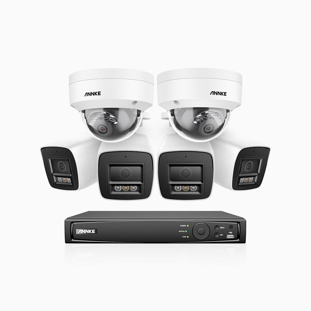 H800 - Kit de surveillance PoE 4K à 16 canaux avec 4 caméras bullet et 2 caméras dôme, anti-vandalisme IK10, vision nocturne en couleur et infrarouge, Détection Personne-Véhicule, Microphone intégré, Champ de vision de 96°, RTSP et ONVIF pris en charge