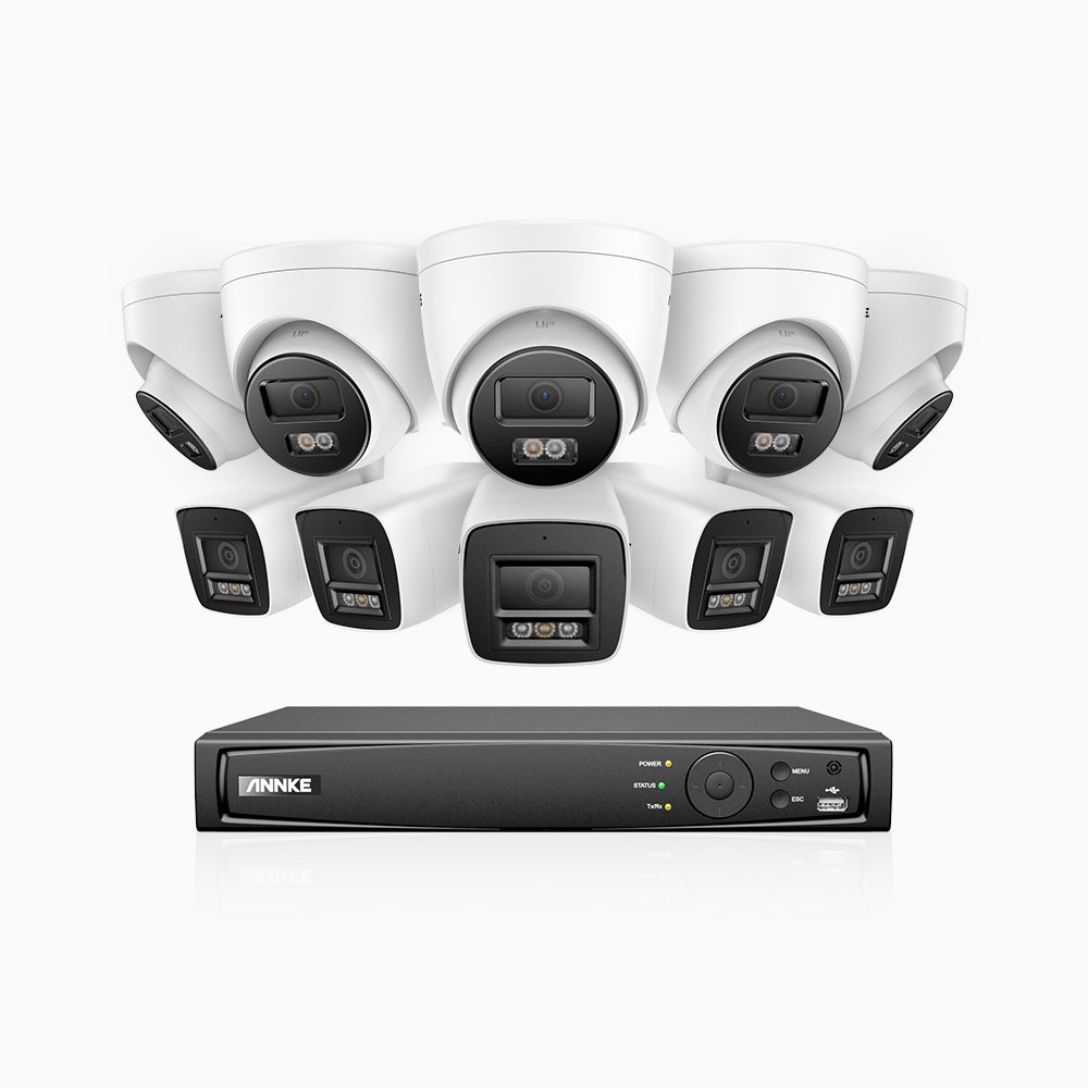 H800 - Kit de surveillance PoE 4K à 16 canaux avec 5 caméras bullet et 5 caméras tourelle, vision nocturne en couleur et infrarouge, Détection Personne-Véhicule, Microphone intégré, Champ de vision de 96°, RTSP et ONVIF pris en charge