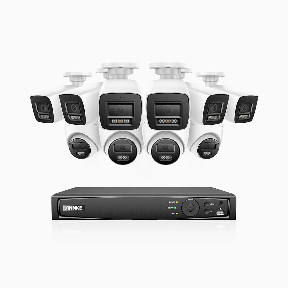 H800 - Kit de surveillance PoE 4K à 16 canaux avec 6 caméras bullet et 4 caméras tourelle, vision nocturne en couleur et infrarouge, Détection Personne-Véhicule, Microphone intégré, Champ de vision de 96°, RTSP et ONVIF pris en charge