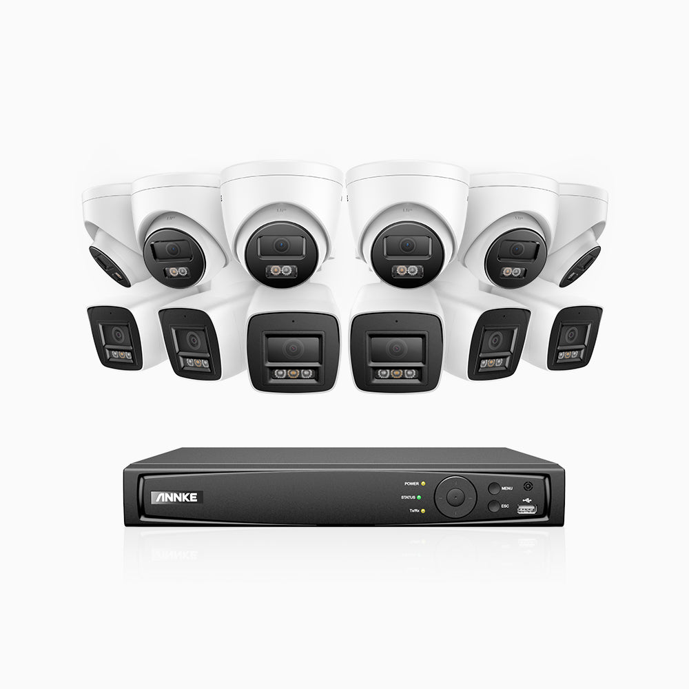 H800 - Kit de surveillance PoE 4K à 16 canaux avec 6 caméras bullet et 6 caméras tourelle, vision nocturne en couleur et infrarouge, Détection Personne-Véhicule, Microphone intégré, Champ de vision de 96°, RTSP et ONVIF pris en charge