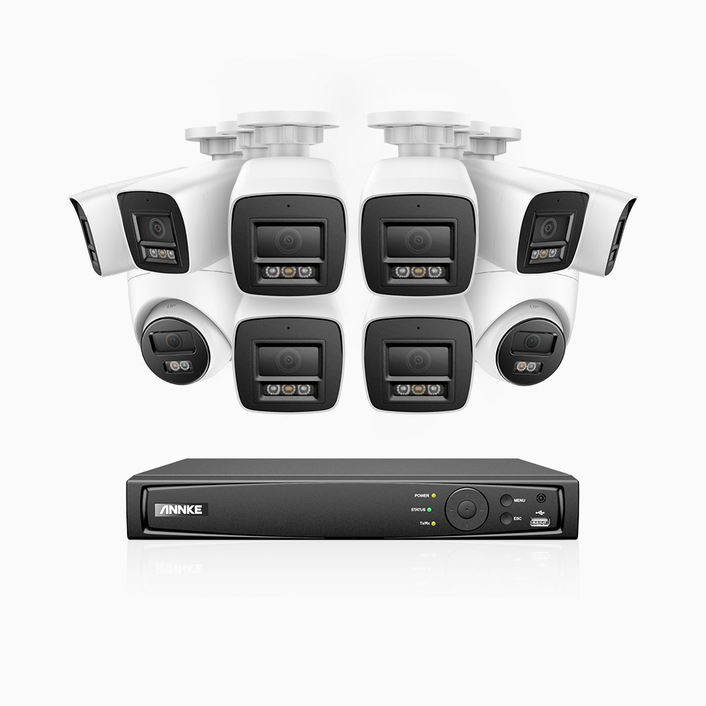 H800 - Kit de surveillance PoE 4K à 16 canaux avec 8 caméras bullet et 2 caméras tourelle, vision nocturne en couleur et infrarouge, Détection Personne-Véhicule, Microphone intégré, Champ de vision de 96°, RTSP et ONVIF pris en charge