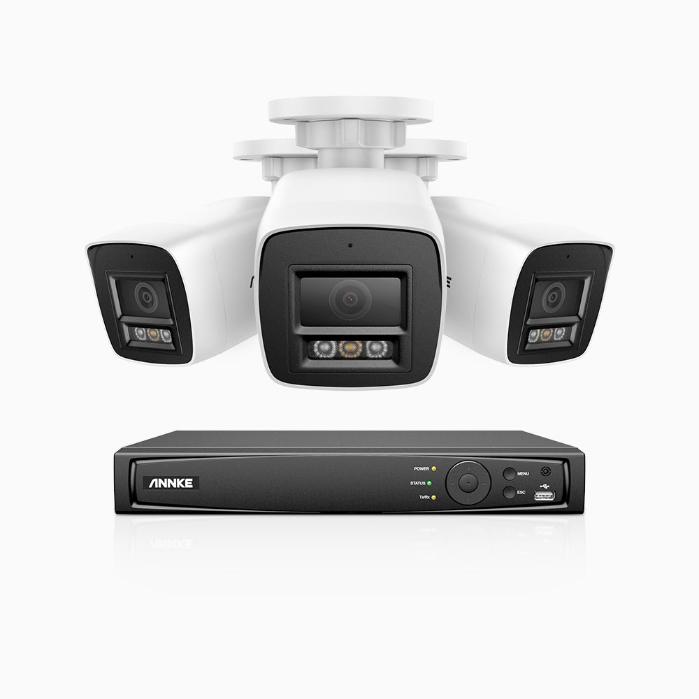 H800 - Kit de surveillance PoE 4K à 4 canaux avec 3 caméras, vision nocturne en couleur et infrarouge, Détection Personne-Véhicule, Microphone intégré, Champ de vision de 96°, RTSP et ONVIF pris en charge