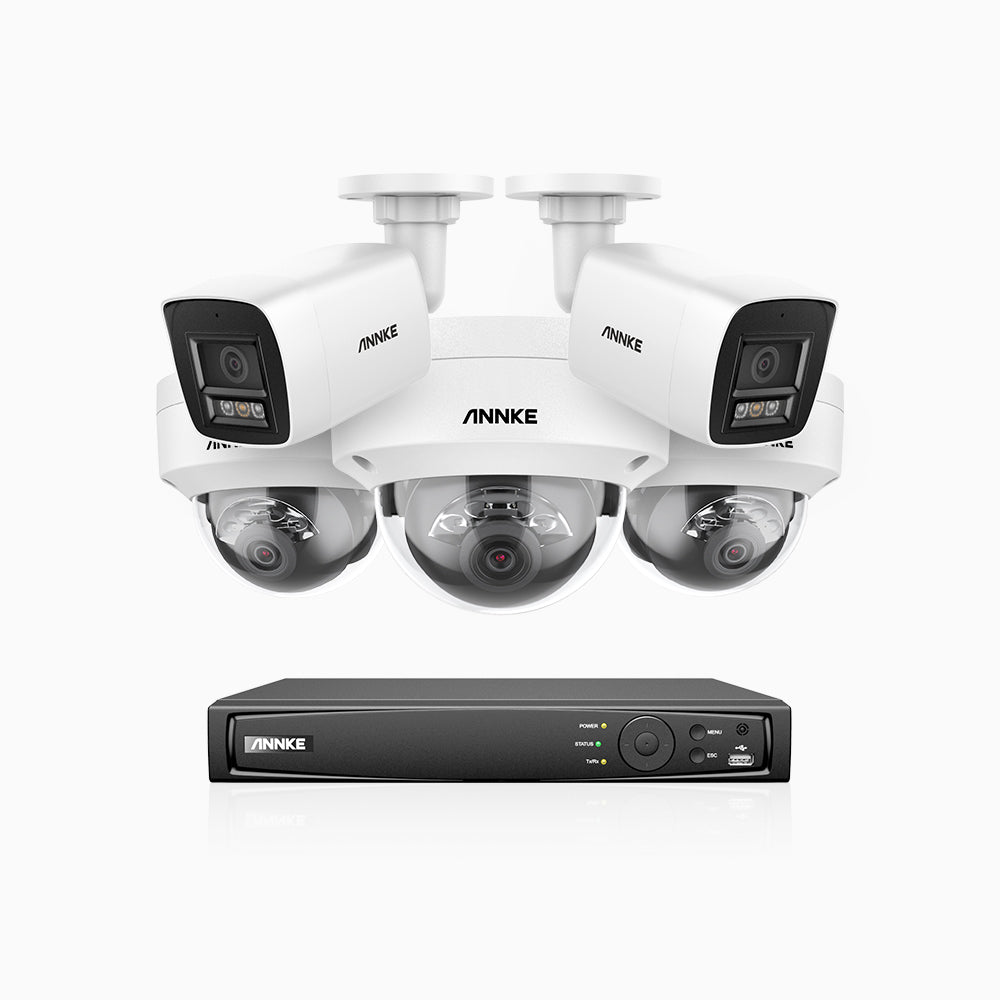 H800 - Kit de surveillance PoE 4K à 8 canaux avec 2 caméras bullet et 3 caméras dôme, anti-vandalisme IK10, vision nocturne en couleur et infrarouge, Détection Personne-Véhicule, Microphone intégré, Champ de vision de 96°, RTSP et ONVIF pris en charge