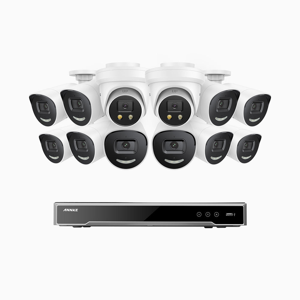 H800X - 4K 16 Channel PoE Security System with 10 Bullet & 2 Turret Cameras, 1/1.8'' BSI Sensor, f/1.6 Aperture (0.003 Lux), Siren & Strobe Alarm,Two-Way Audio, Human & Vehicle Detection, Perimeter Protection, Works with Alexa