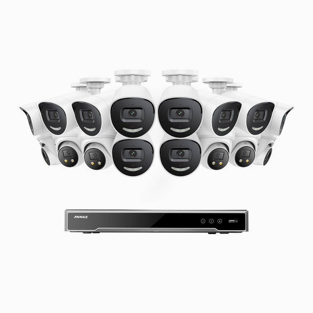 H800X - 4K 16 Channel PoE Security System with 10 Bullet & 6 Turret Cameras, 1/1.8'' BSI Sensor, f/1.6 Aperture (0.003 Lux), Siren & Strobe Alarm, Two-Way Audio, Human & Vehicle Detection, Perimeter Protection, Works with Alexa