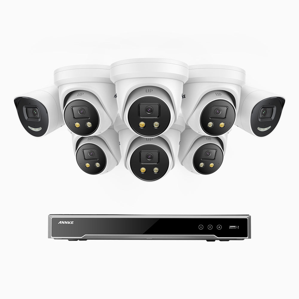 H800X - 4K 16 Channel PoE Security System with 2 Bullet & 6 Turret Cameras, 1/1.8'' BSI Sensor, f/1.6 Aperture (0.003 Lux), Siren & Strobe Alarm,Two-Way Audio, Human & Vehicle Detection, Perimeter Protection, Works with Alexa