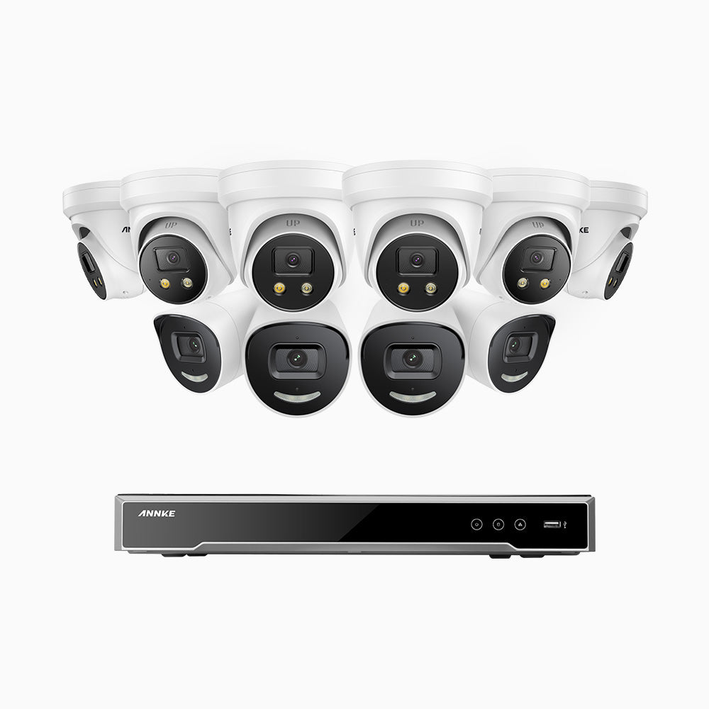 H800X - 4K 16 Channel PoE Security System with 4 Bullet & 6 Turret Cameras, 1/1.8'' BSI Sensor, f/1.6 Aperture (0.003 Lux), Siren & Strobe Alarm,Two-Way Audio, Human & Vehicle Detection, Perimeter Protection, Works with Alexa