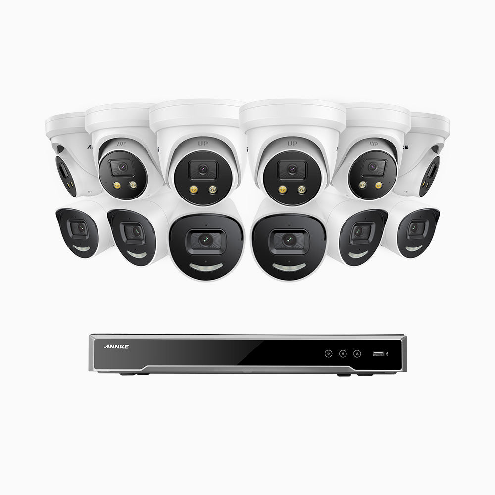 H800X - 4K 16 Channel PoE Security System with 6 Bullet & 6 Turret Cameras, 1/1.8'' BSI Sensor, f/1.6 Aperture (0.003 Lux), Siren & Strobe Alarm,Two-Way Audio, Human & Vehicle Detection, Perimeter Protection, Works with Alexa