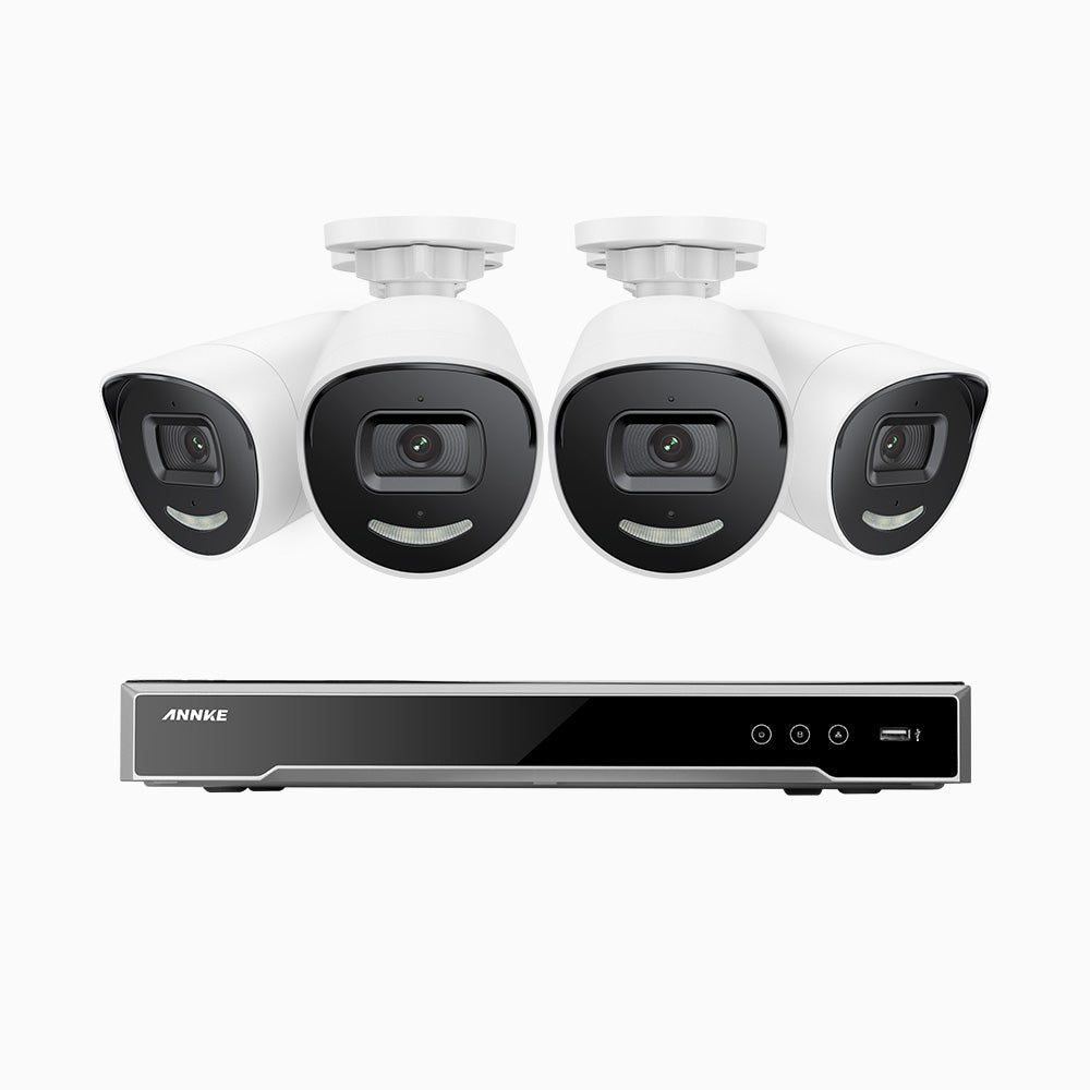 H800X - 4K 8 Channel 4 Cameras PoE Security System, 1/1.8'' BSI Sensor, f/1.6 Aperture (0.003 Lux), Siren & Strobe Alarm,Two-Way Audio, Human & Vehicle Detection, Perimeter Protection, Works with Alexa
