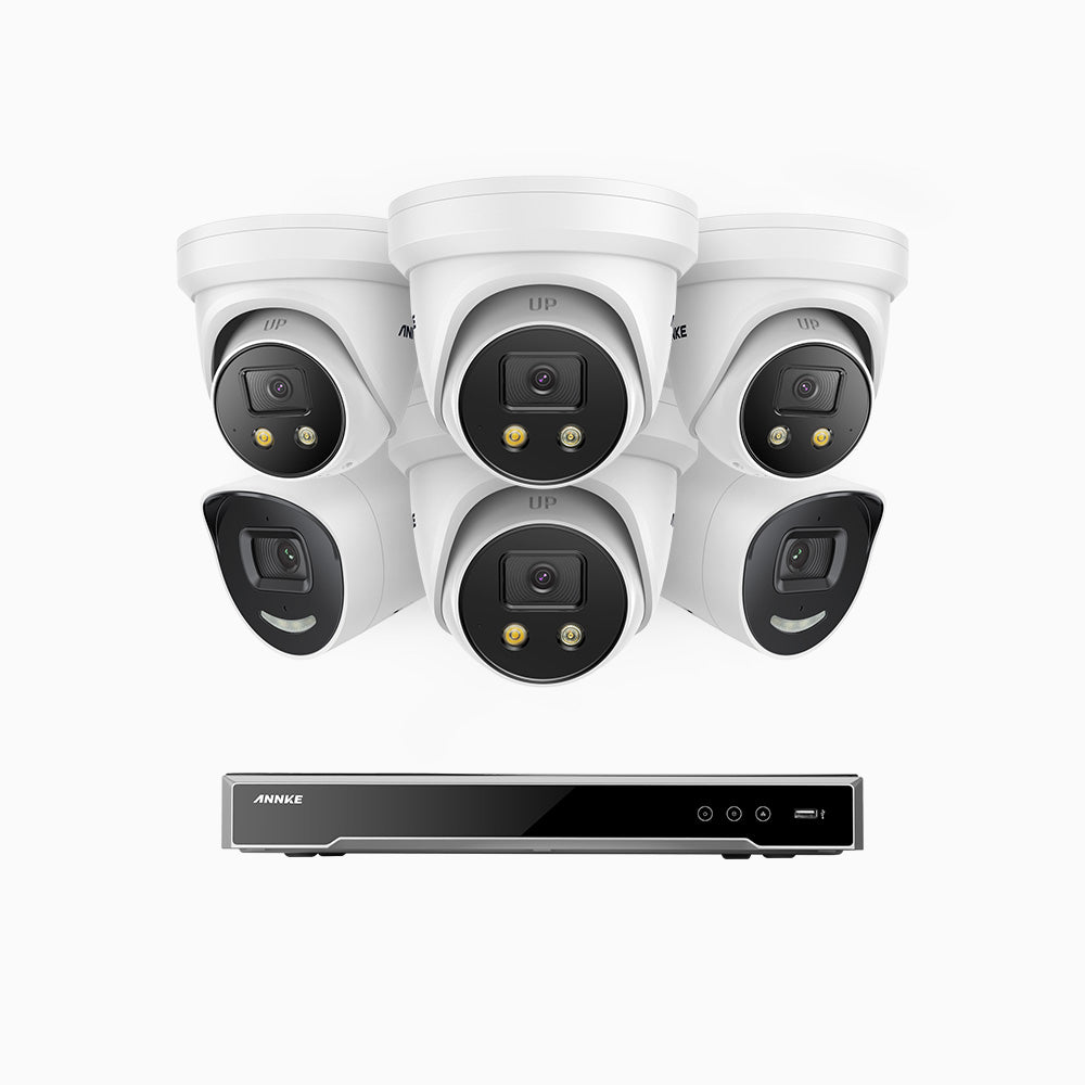 H800X - 4K 8 Channel PoE Security System with 2 Bullet & 4 Turret Cameras, 1/1.8'' BSI Sensor, f/1.6 Aperture (0.003 Lux), Siren & Strobe Alarm,Two-Way Audio, Human & Vehicle Detection, Perimeter Protection, Works with Alexa
