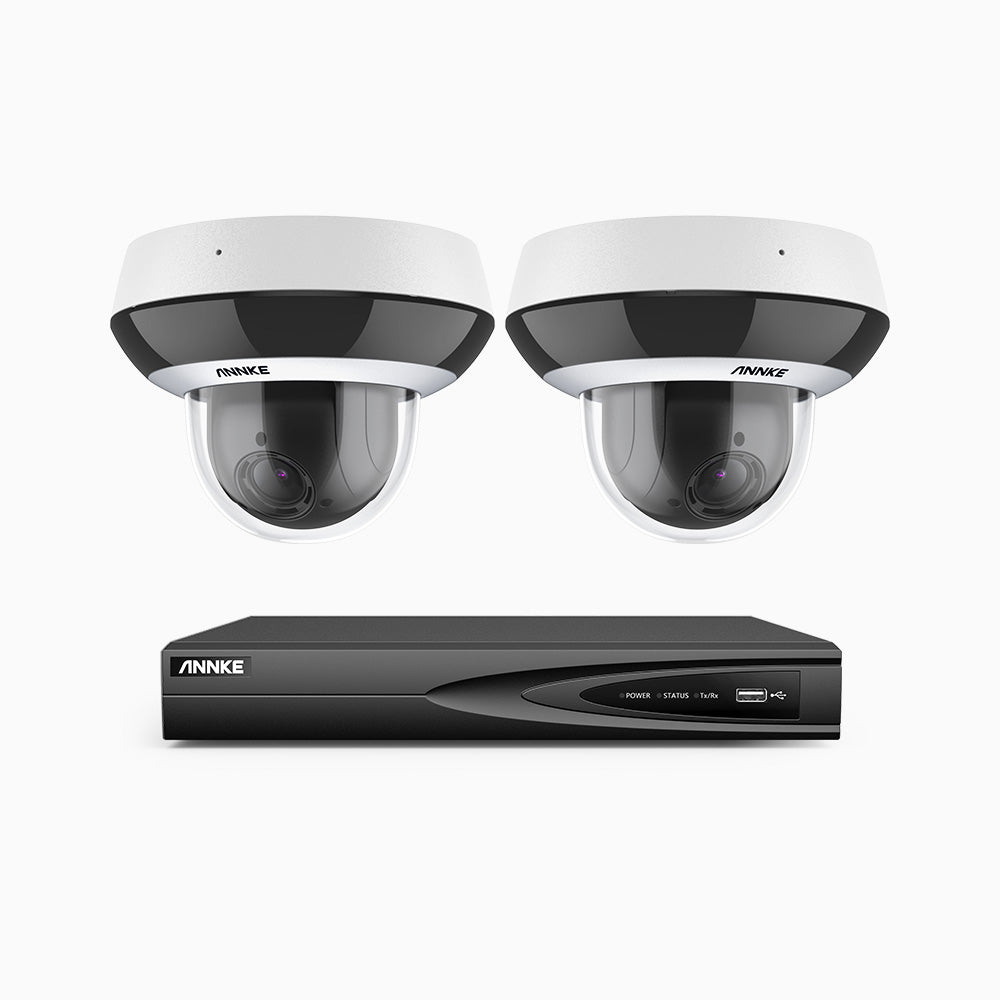 HZ504P - 4 Channel 2 Camera PTZ PoE Security System, 3K Super HD, 4X Optical Zoom, IK10 & IP67, 2.8-12 mm Lens, Intelligent Behavior Analysis, Color Night Vision & Anti-Fog