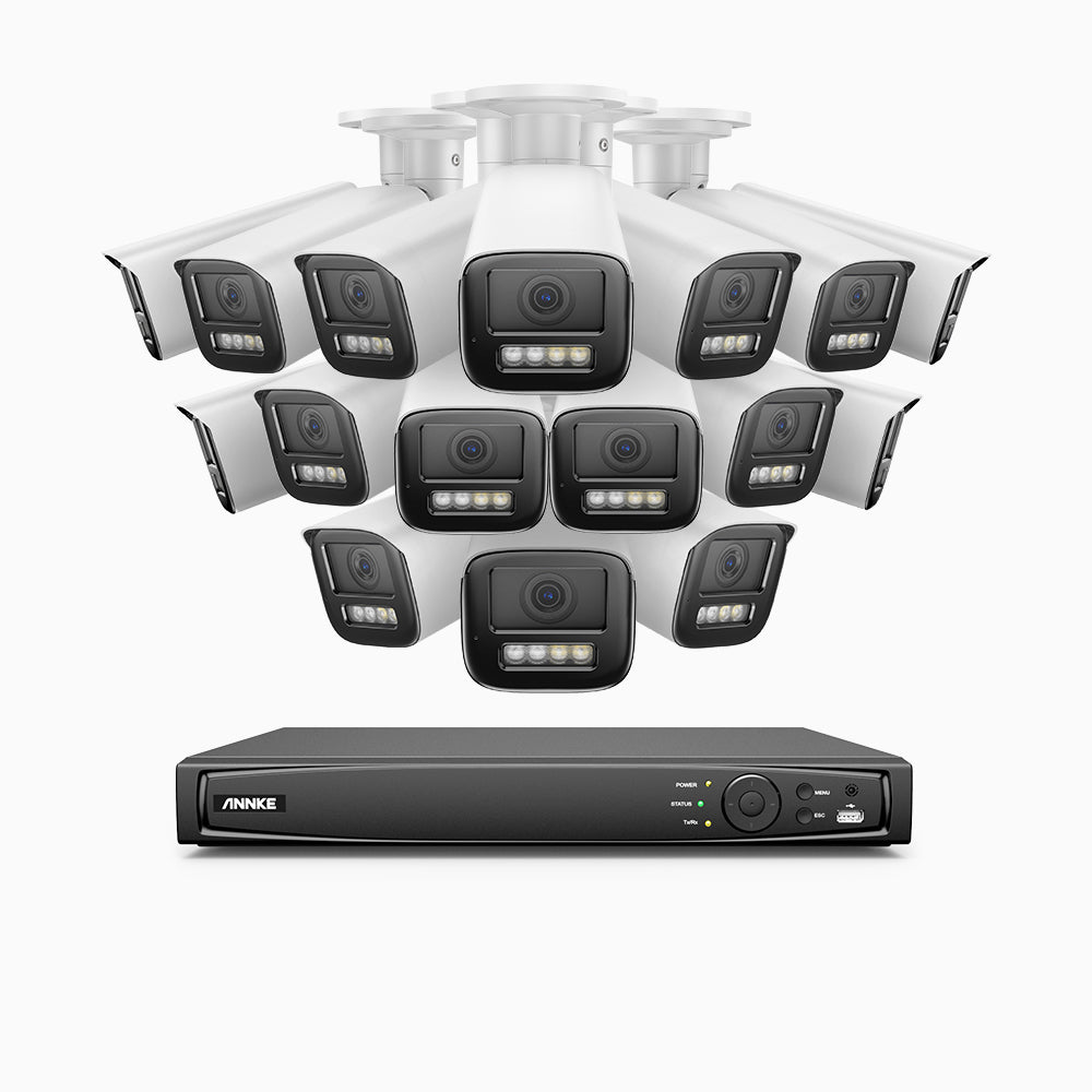 HZ804 - Kit de surveillance 4K à 16 canaux avec 16 PoE caméras, Zoom optique 4X, vision nocturne à deux lumières, détection de mouvement 2.0, Microphone intégré, sirène et alarme stroboscopique