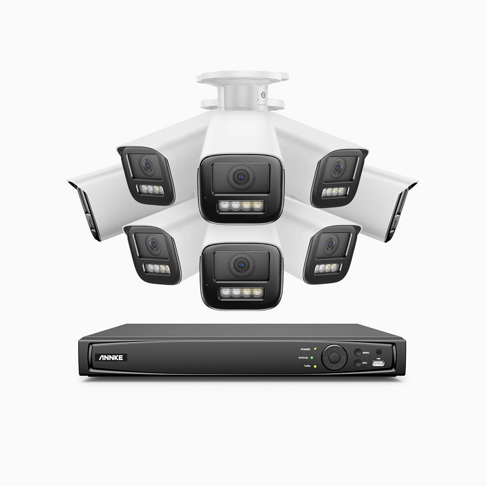 HZ804 - Kit de surveillance 4K à 16 canaux avec 8 PoE caméras, Zoom optique 4X, vision nocturne à deux lumières, détection de mouvement 2.0, Microphone intégré, sirène et alarme stroboscopique