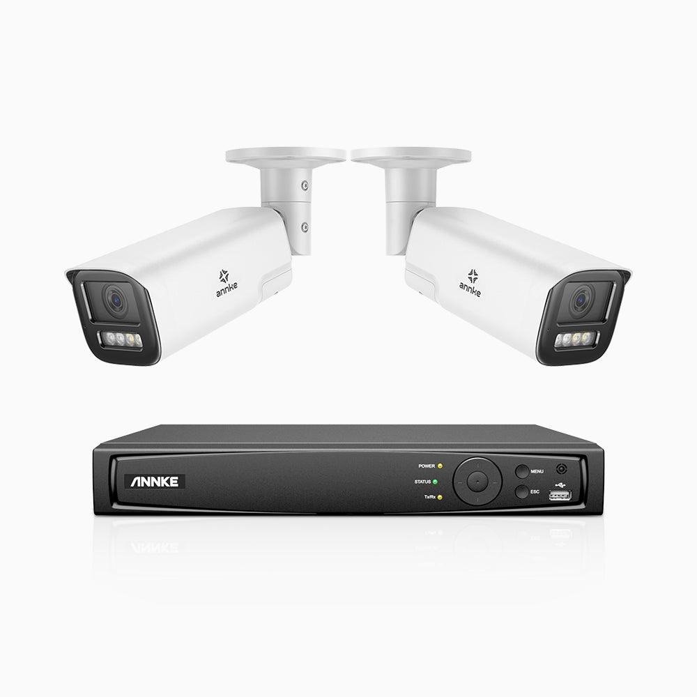 HZ804 - Kit de surveillance 4K à 4 canaux avec 2 PoE caméras, Zoom optique 4X, vision nocturne à deux lumières, détection de mouvement 2.0, Microphone intégré, sirène et alarme stroboscopique