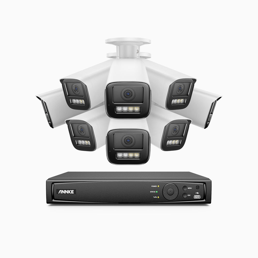 HZ804 - Kit de surveillance 4K à 8 canaux avec 8 PoE caméras, Zoom optique 4X, vision nocturne à deux lumières, détection de mouvement 2.0, Microphone intégré, sirène et alarme stroboscopique