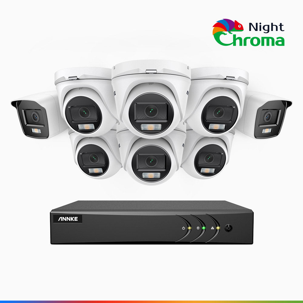 NightChromaTM NAK200 - Kit de surveillance 2MP à 16 canaux avec 2 caméras bullet et 6 caméras tourelle, vision nocturne polychrome Acme (0.0005 Lux)