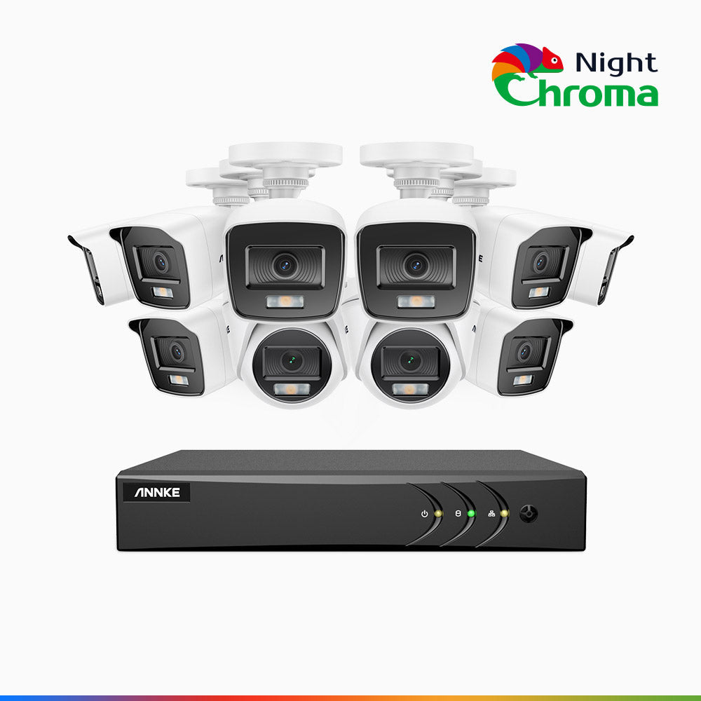 NightChromaTM NAK200 - Kit de surveillance 2MP à 16 canaux avec 8 caméras bullet et 2 caméras tourelle, vision nocturne polychrome Acme (0.0005 Lux)