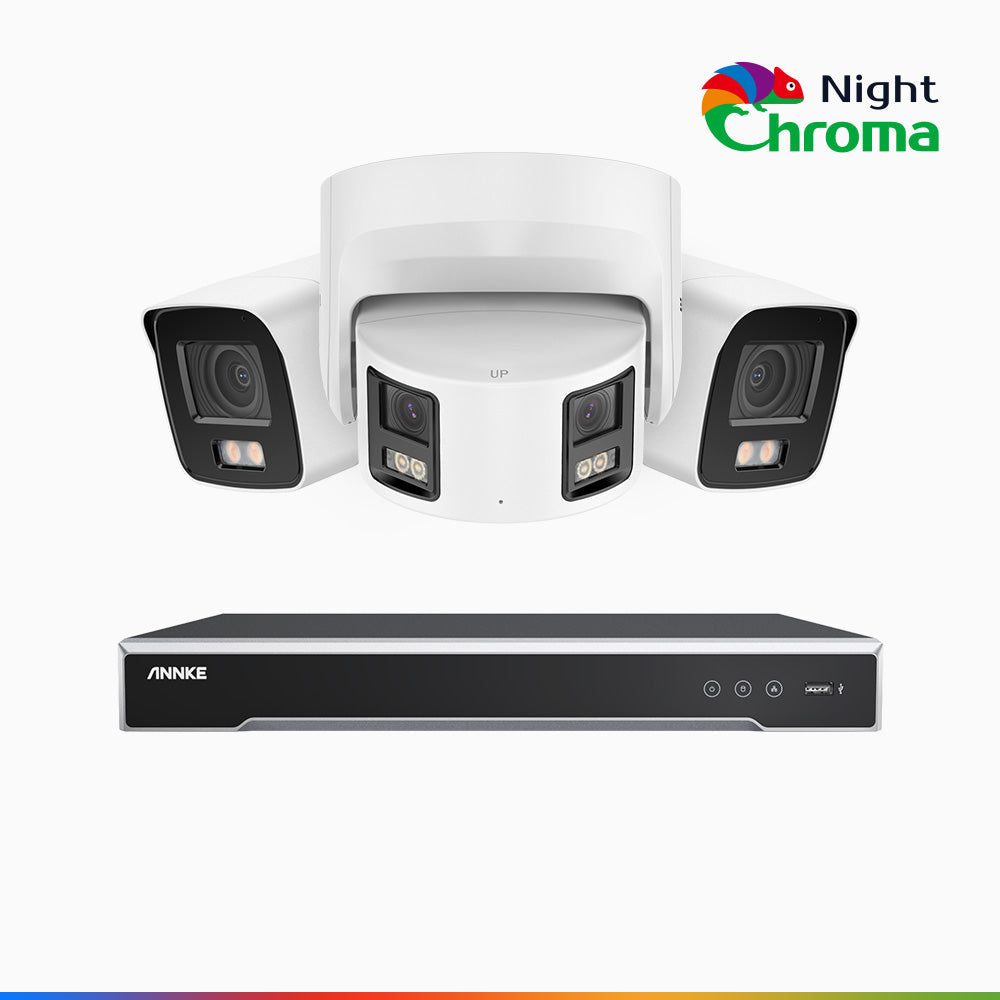 NDCK800 - 8 Channel PoE NVR Security System with Two 4K Cameras & One 4K Dual Lens Panoramic Camera, f/1.0 Super Aperture, Acme Color Night Vision, Human & Vehicle Detection, Built-in Microphone