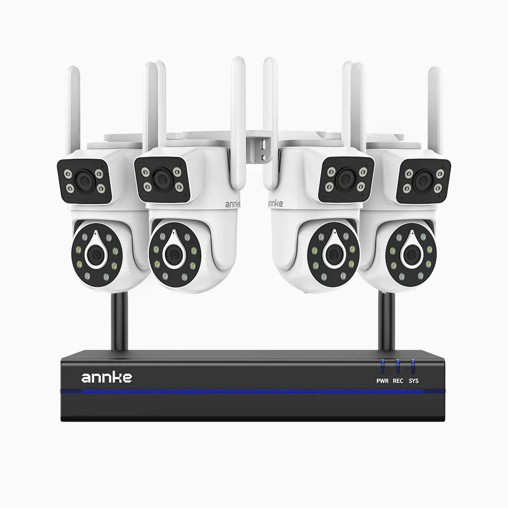 WCDS400 - Kit vidéo surveillance sans fil 4MP à 8 canaux avec 4 caméras, WiFi bi-bande, 350° Pan & 90° Tilt, vision nocturne à double éclairage, détection de mouvement, audio bidirectionnel, compatible Alexa